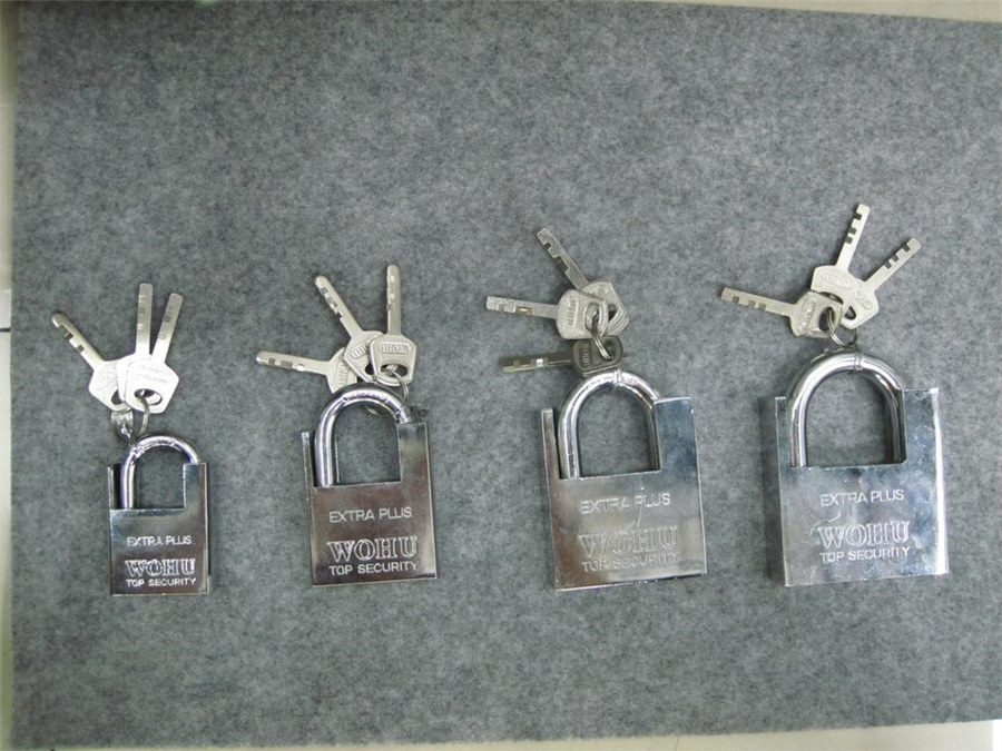 WOHU牌四方锁,标准锁体,粗挂梁,安全稳定,表面采用亚光处理,不反光,不刮手。有插卡双泡两种包装。8个型号,30MM---100MM。质量保证,价格实惠,深受